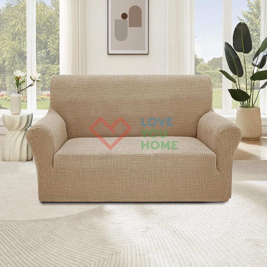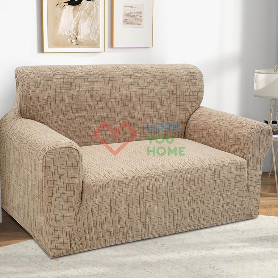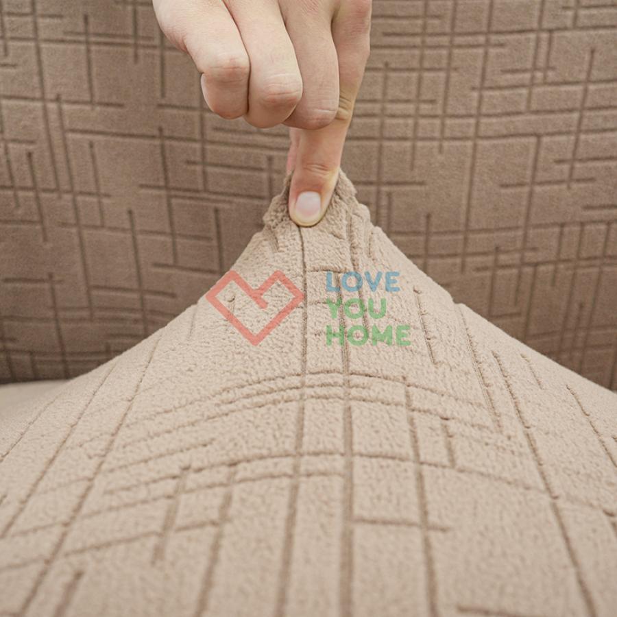 Еластичний трикотажний чохол із жакардовою текстурою для диванів Чохол виготовлений з якісного трикотажного матеріалу з жакардовою текстурою, яка надає інтер'єру сучасності та витонченості. Завдяки спеціальним виточкам і комплекту з поролоновими валиками, чохол забезпечує ідеальне прилягання до меблів, повторюючи форму сидіння, спинки і підлокітників. Основні характеристики: Матеріал: Високоякісний стрейчевий трикотаж із жакардовою текстурою, який поєднує еластичність і міцність. Дизайн: Однотонний і сучасний, гармонійно впишеться в будь-який інтер'єр. Комплектація: У набір входять поролонові валики для надійної фіксації тканини між сидінням, спинкою і підлокітниками. Функціональність: Ефективно захищає меблі від пилу, плям, пошкоджень і зносу. Переваги: Легке встановлення: Завдяки еластичній тканині та поролоновим валикам чохол легко натягується і надійно фіксується. Охайний вигляд: Ідеально прилягає до форми дивана, запобігаючи зміщенню. Простота догляду: Підходить для машинного прання, зберігаючи свою текстуру і насиченість кольору навіть після багаторазового використання. Вибір розміру: Двомісний диван: Оптимальний для меблів стандартного розміру з двома посадочними місцями. Тримісний диван: Розроблено для великих диванів із трьома посадочними місцями. Чотиримісний диван: Ідеально підходить для просторих диванів з чотирма посадочними місцями.
