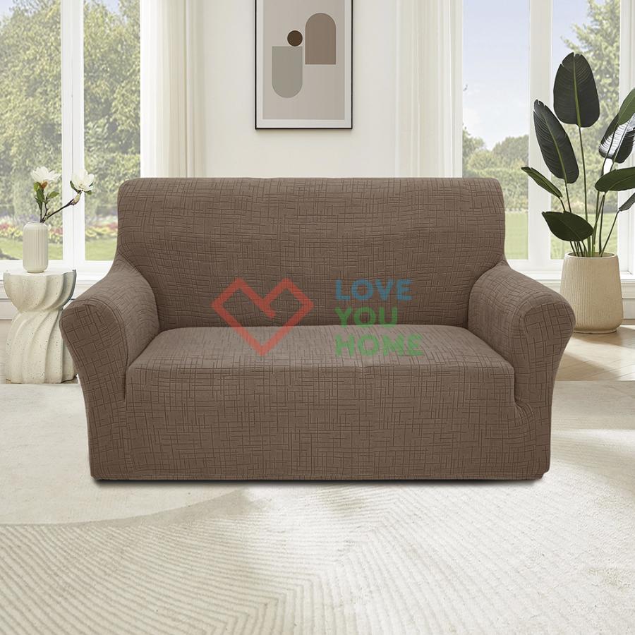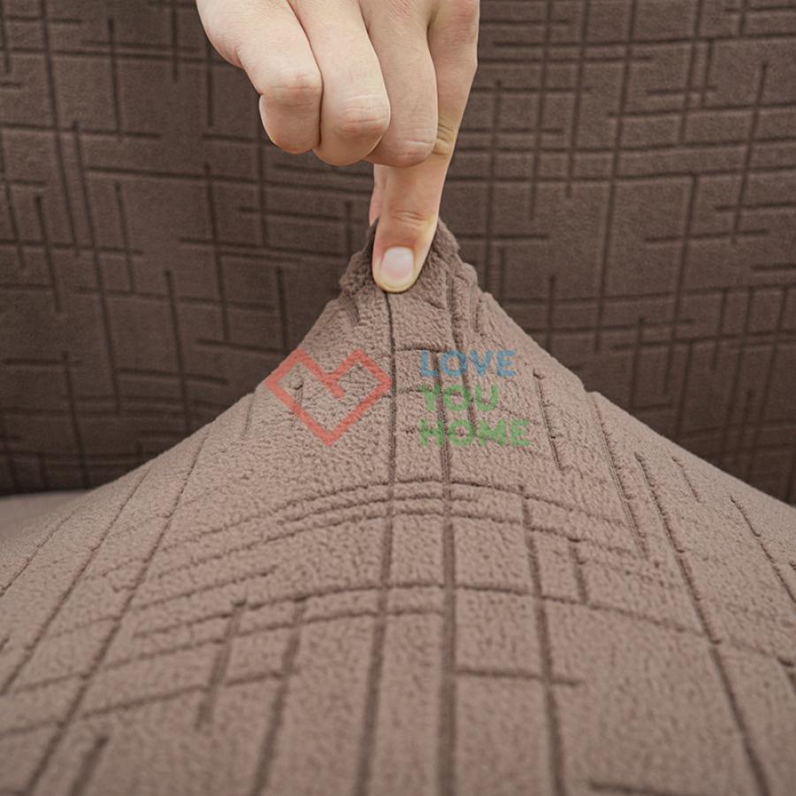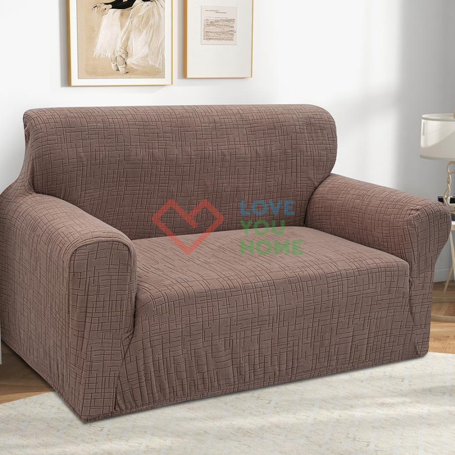 Еластичний трикотажний чохол із жакардовою текстурою для диванів Чохол виготовлений з якісного трикотажного матеріалу з жакардовою текстурою, яка надає інтер'єру сучасності та витонченості. Завдяки спеціальним виточкам і комплекту з поролоновими валиками, чохол забезпечує ідеальне прилягання до меблів, повторюючи форму сидіння, спинки і підлокітників. Основні характеристики: Матеріал: Високоякісний стрейчевий трикотаж із жакардовою текстурою, який поєднує еластичність і міцність. Дизайн: Однотонний і сучасний, гармонійно впишеться в будь-який інтер'єр. Комплектація: У набір входять поролонові валики для надійної фіксації тканини між сидінням, спинкою і підлокітниками. Функціональність: Ефективно захищає меблі від пилу, плям, пошкоджень і зносу. Переваги: Легке встановлення: Завдяки еластичній тканині та поролоновим валикам чохол легко натягується і надійно фіксується. Охайний вигляд: Ідеально прилягає до форми дивана, запобігаючи зміщенню. Простота догляду: Підходить для машинного прання, зберігаючи свою текстуру і насиченість кольору навіть після багаторазового використання. Вибір розміру: Двомісний диван: Оптимальний для меблів стандартного розміру з двома посадочними місцями. Тримісний диван: Розроблено для великих диванів із трьома посадочними місцями. Чотиримісний диван: Ідеально підходить для просторих диванів з чотирма посадочними місцями.