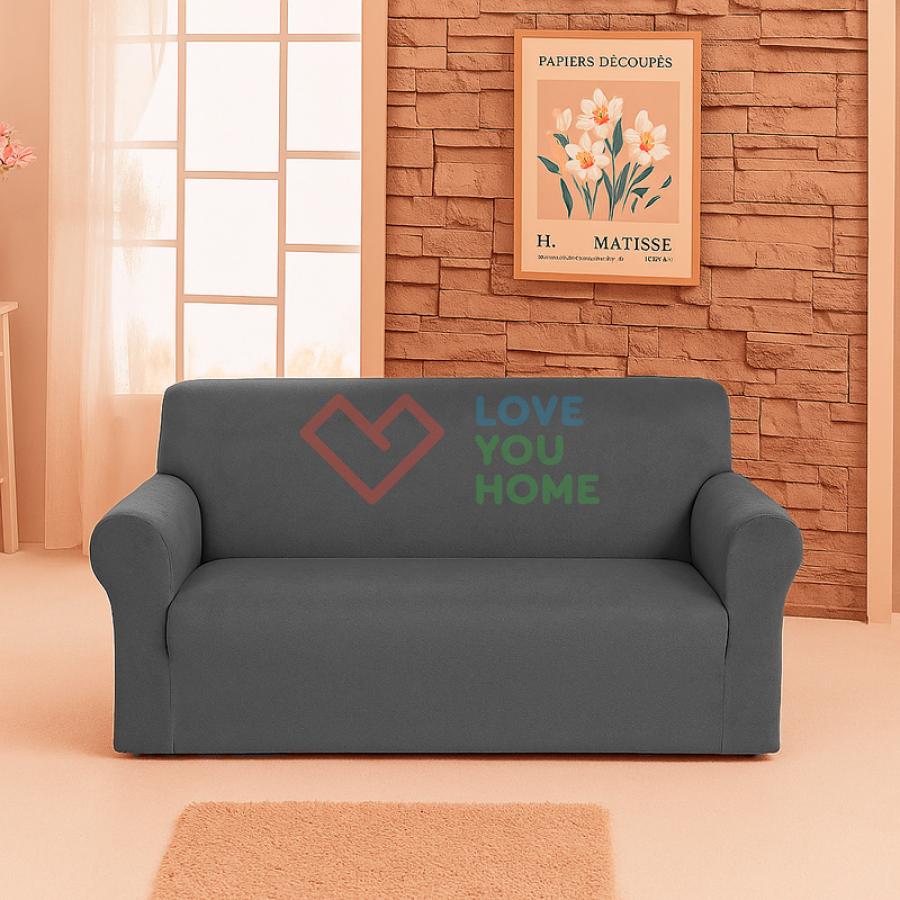 Чохол на диван 2-місний Велюр темно-сірий Love You