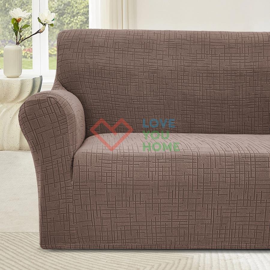 Еластичний трикотажний чохол із жакардовою текстурою для диванів Чохол виготовлений з якісного трикотажного матеріалу з жакардовою текстурою, яка надає інтер'єру сучасності та витонченості. Завдяки спеціальним виточкам і комплекту з поролоновими валиками, чохол забезпечує ідеальне прилягання до меблів, повторюючи форму сидіння, спинки і підлокітників. Основні характеристики: Матеріал: Високоякісний стрейчевий трикотаж із жакардовою текстурою, який поєднує еластичність і міцність. Дизайн: Однотонний і сучасний, гармонійно впишеться в будь-який інтер'єр. Комплектація: У набір входять поролонові валики для надійної фіксації тканини між сидінням, спинкою і підлокітниками. Функціональність: Ефективно захищає меблі від пилу, плям, пошкоджень і зносу. Переваги: Легке встановлення: Завдяки еластичній тканині та поролоновим валикам чохол легко натягується і надійно фіксується. Охайний вигляд: Ідеально прилягає до форми дивана, запобігаючи зміщенню. Простота догляду: Підходить для машинного прання, зберігаючи свою текстуру і насиченість кольору навіть після багаторазового використання. Вибір розміру: Двомісний диван: Оптимальний для меблів стандартного розміру з двома посадочними місцями. Тримісний диван: Розроблено для великих диванів із трьома посадочними місцями. Чотиримісний диван: Ідеально підходить для просторих диванів з чотирма посадочними місцями.