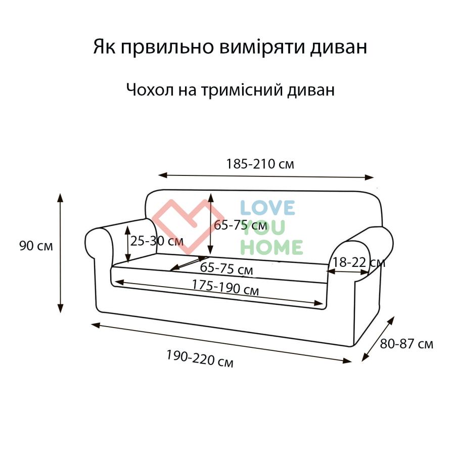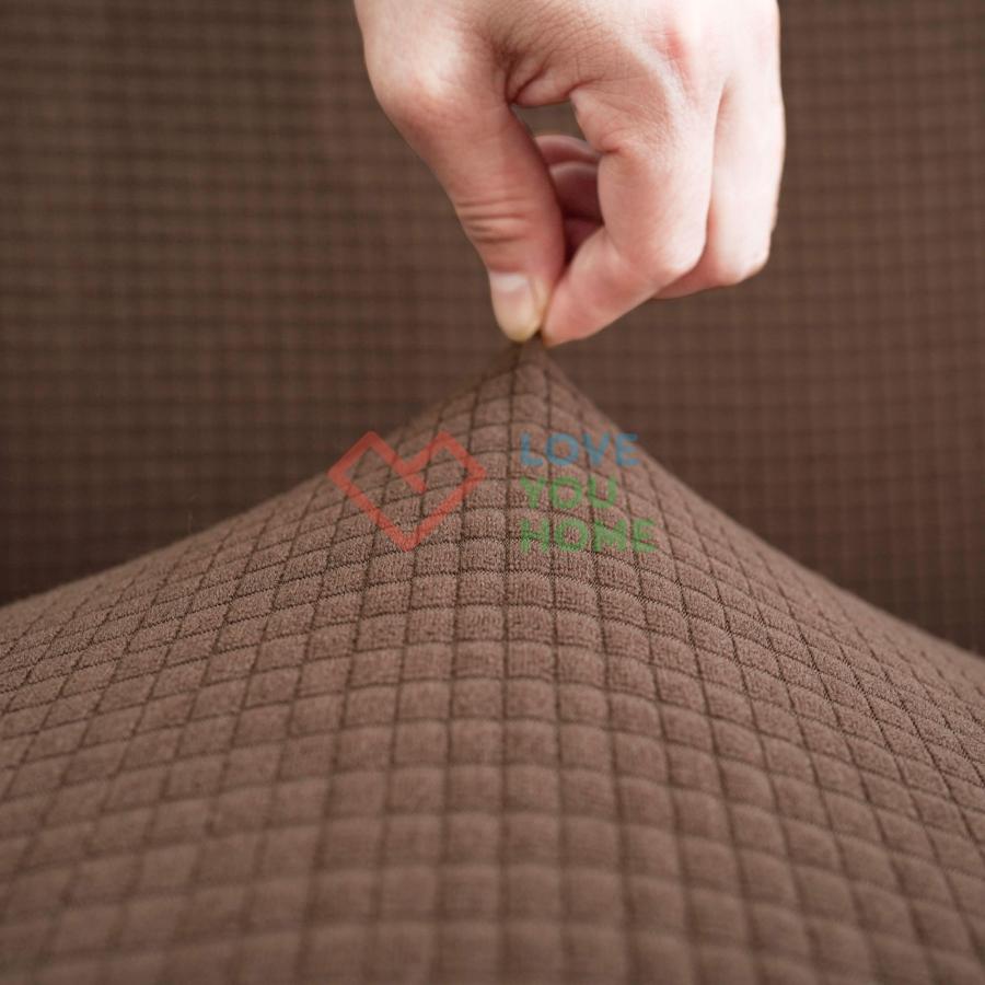 Еластичний трикотажний чохол із жакардовою текстурою для диванів Чохол виготовлений з якісного трикотажного матеріалу з жакардовою текстурою, яка надає інтер'єру сучасності та витонченості. Завдяки спеціальним виточкам і комплекту з поролоновими валиками, чохол забезпечує ідеальне прилягання до меблів, повторюючи форму сидіння, спинки і підлокітників. Основні характеристики: Матеріал: Високоякісний стрейчевий трикотаж із жакардовою текстурою, який поєднує еластичність і міцність. Дизайн: Однотонний і сучасний, гармонійно впишеться в будь-який інтер'єр. Комплектація: У набір входять поролонові валики для надійної фіксації тканини між сидінням, спинкою і підлокітниками. Функціональність: Ефективно захищає меблі від пилу, плям, пошкоджень і зносу. Переваги: Легке встановлення: Завдяки еластичній тканині та поролоновим валикам чохол легко натягується і надійно фіксується. Охайний вигляд: Ідеально прилягає до форми дивана, запобігаючи зміщенню. Простота догляду: Підходить для машинного прання, зберігаючи свою текстуру і насиченість кольору навіть після багаторазового використання. Вибір розміру: Двомісний диван: Оптимальний для меблів стандартного розміру з двома посадочними місцями. Тримісний диван: Розроблено для великих диванів із трьома посадочними місцями. Чотиримісний диван: Ідеально підходить для просторих диванів з чотирма посадочними місцями.