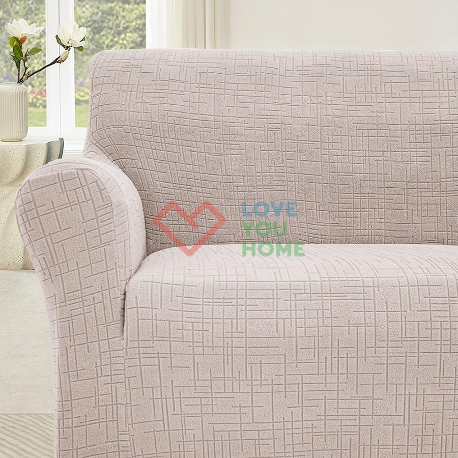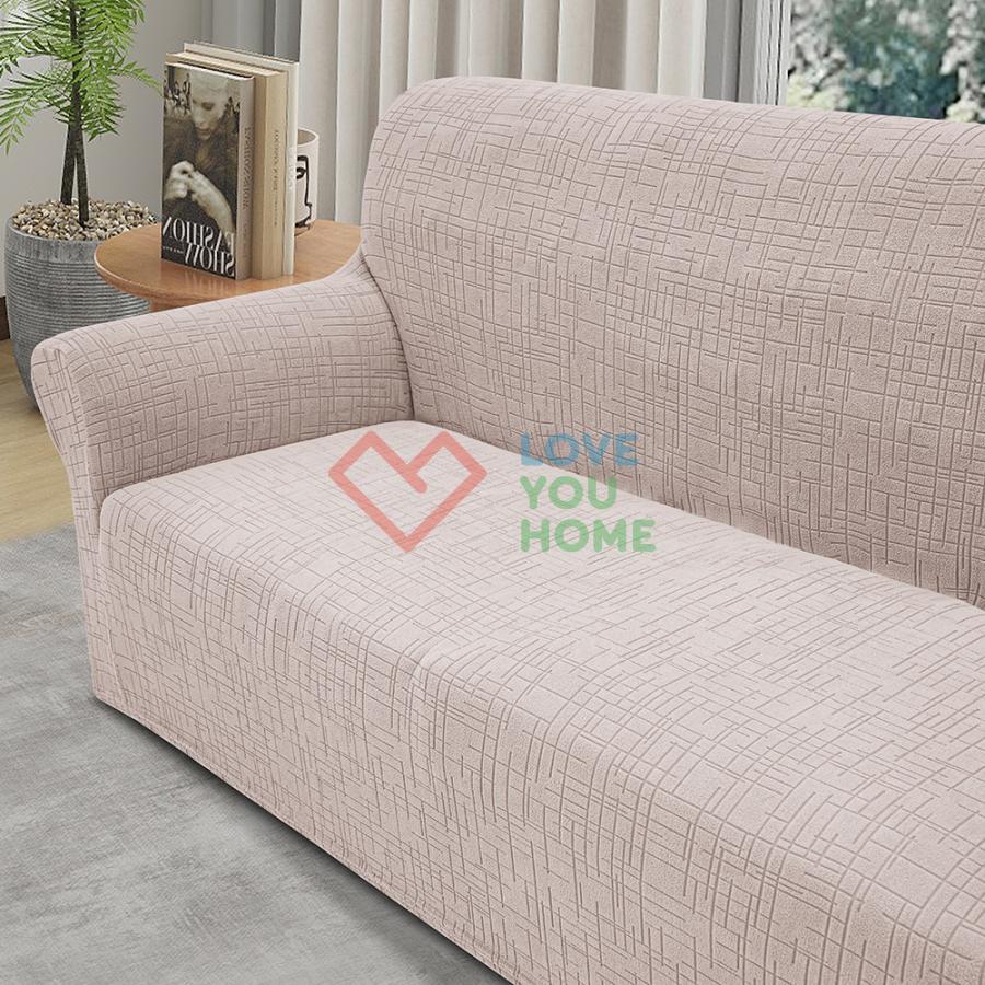 Еластичний трикотажний чохол із жакардовою текстурою для диванів Чохол виготовлений з якісного трикотажного матеріалу з жакардовою текстурою, яка надає інтер'єру сучасності та витонченості. Завдяки спеціальним виточкам і комплекту з поролоновими валиками, чохол забезпечує ідеальне прилягання до меблів, повторюючи форму сидіння, спинки і підлокітників. Основні характеристики: Матеріал: Високоякісний стрейчевий трикотаж із жакардовою текстурою, який поєднує еластичність і міцність. Дизайн: Однотонний і сучасний, гармонійно впишеться в будь-який інтер'єр. Комплектація: У набір входять поролонові валики для надійної фіксації тканини між сидінням, спинкою і підлокітниками. Функціональність: Ефективно захищає меблі від пилу, плям, пошкоджень і зносу. Переваги: Легке встановлення: Завдяки еластичній тканині та поролоновим валикам чохол легко натягується і надійно фіксується. Охайний вигляд: Ідеально прилягає до форми дивана, запобігаючи зміщенню. Простота догляду: Підходить для машинного прання, зберігаючи свою текстуру і насиченість кольору навіть після багаторазового використання. Вибір розміру: Двомісний диван: Оптимальний для меблів стандартного розміру з двома посадочними місцями. Тримісний диван: Розроблено для великих диванів із трьома посадочними місцями. Чотиримісний диван: Ідеально підходить для просторих диванів з чотирма посадочними місцями.