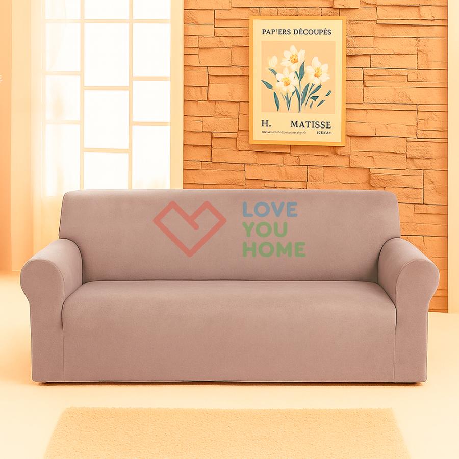 Чохол на диван 3-місний велюровий капучино Love You