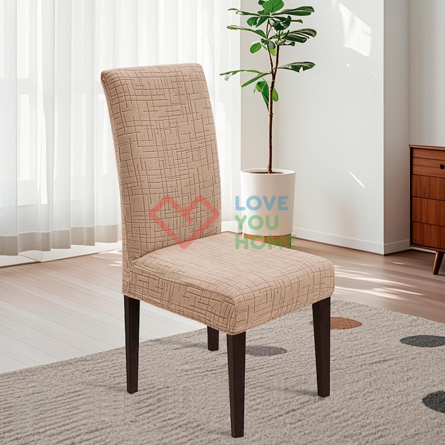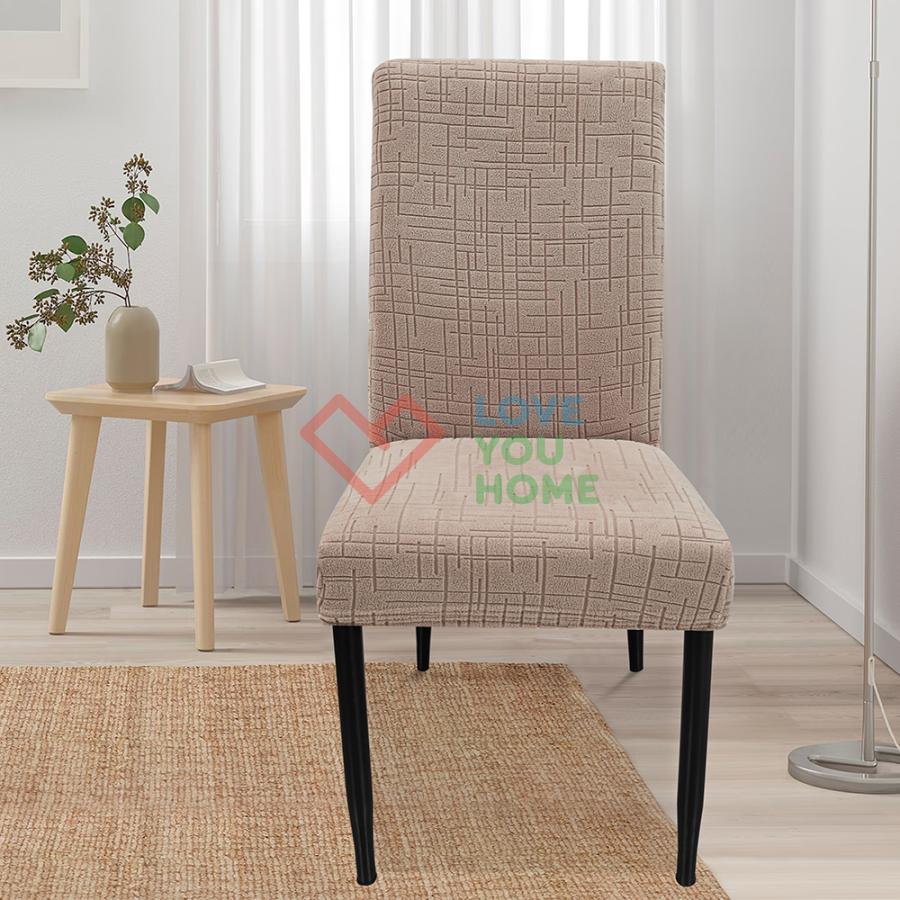 Еластичний чохол для стільців із тканини Corn Fleece. Універсальні чохли для стільців з еластичного жаккарда зі стрейчем підходять для стільців з висотою спинки від 45 до 60 см і шириною сидіння від 35 до 42 см. Ці щільні чохли надійно захищають стільці від пошкоджень, зокрема від кігтів тварин, і приховують дефекти, такі як подряпини і плями. Легкі в догляді, вони перуться за температури до 30°C. Стильні та практичні, чохли ідеально підходять для оновлення інтер'єру будинку, кухні, ресторану або для весільних заходів і банкетів.