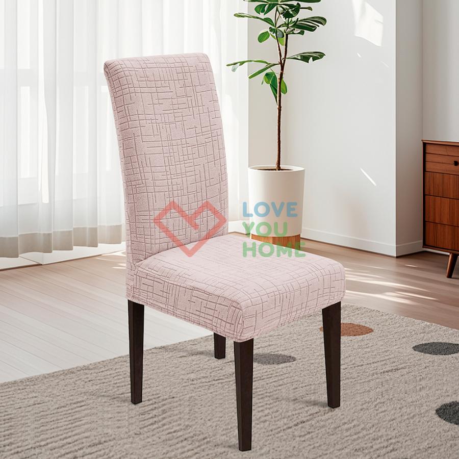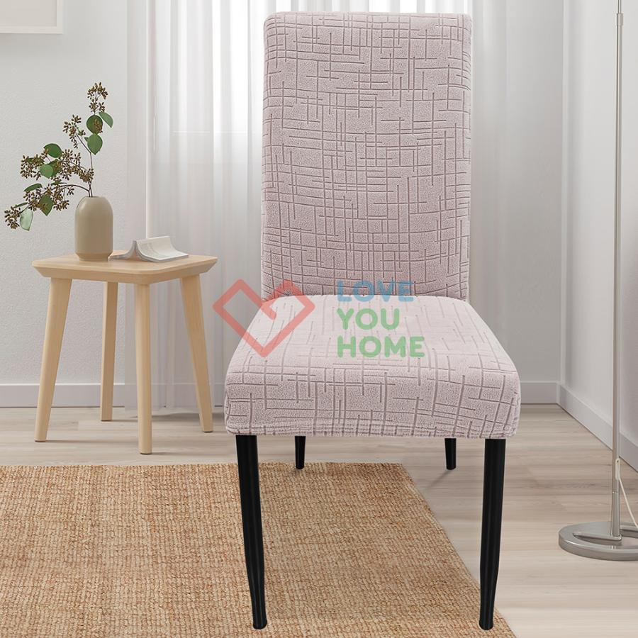 Еластичний чохол для стільців із тканини Corn Fleece. Універсальні чохли для стільців з еластичного жаккарда зі стрейчем підходять для стільців з висотою спинки від 45 до 60 см і шириною сидіння від 35 до 42 см. Ці щільні чохли надійно захищають стільці від пошкоджень, зокрема від кігтів тварин, і приховують дефекти, такі як подряпини і плями. Легкі в догляді, вони перуться за температури до 30°C. Стильні та практичні, чохли ідеально підходять для оновлення інтер'єру будинку, кухні, ресторану або для весільних заходів і банкетів.