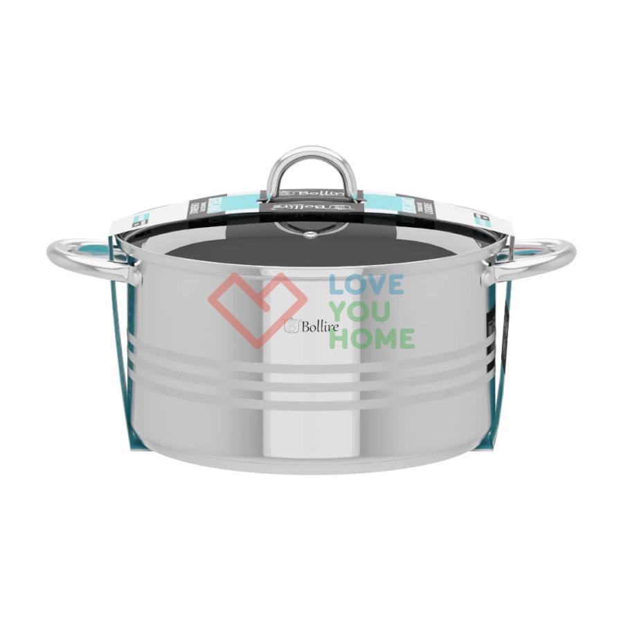 Каструля із кришкою BOLLIRE BERGAMO. Об'єм: 10 л. Діаметр: 30 см. Матеріал: нержавіюча сталь. Антипригарне покриття: ні Зовнішнє покриття: дзеркальне полірування із сатинованим оздобленням. П'ятишарове капсульне дно. Мірна шкала. Скляна кришка. Металеві ручки, що не нагріваються. Вид кріплення клепка. Підходить для всіх видів плит.