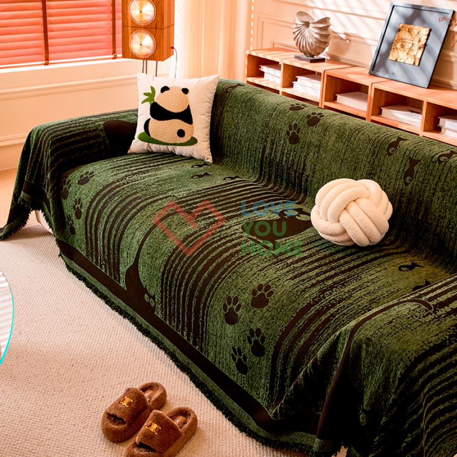 Накидка-покривало на диван 180х220 Коти та лапки Темно-зелена двостороння MP11 Love You
