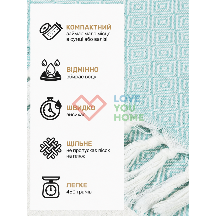 Пештемаль рушник Love You Home — 100% бавовна для максимального комфорту