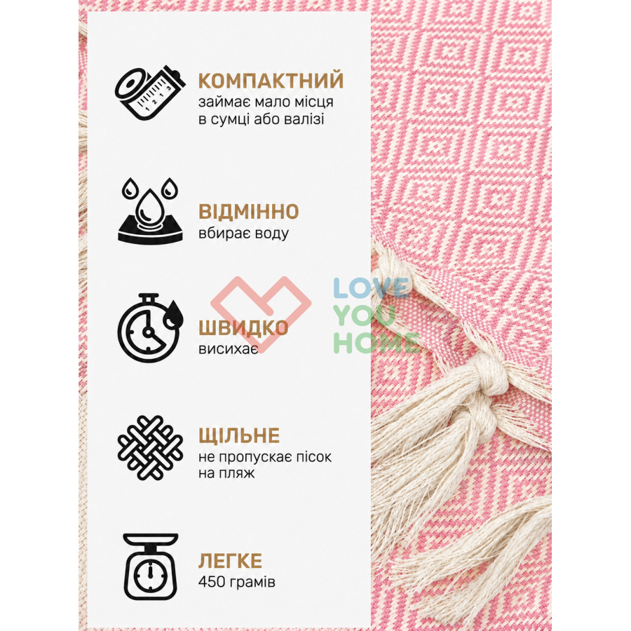 Пештемаль рушник Love You Home — 100% бавовна для максимального комфорту