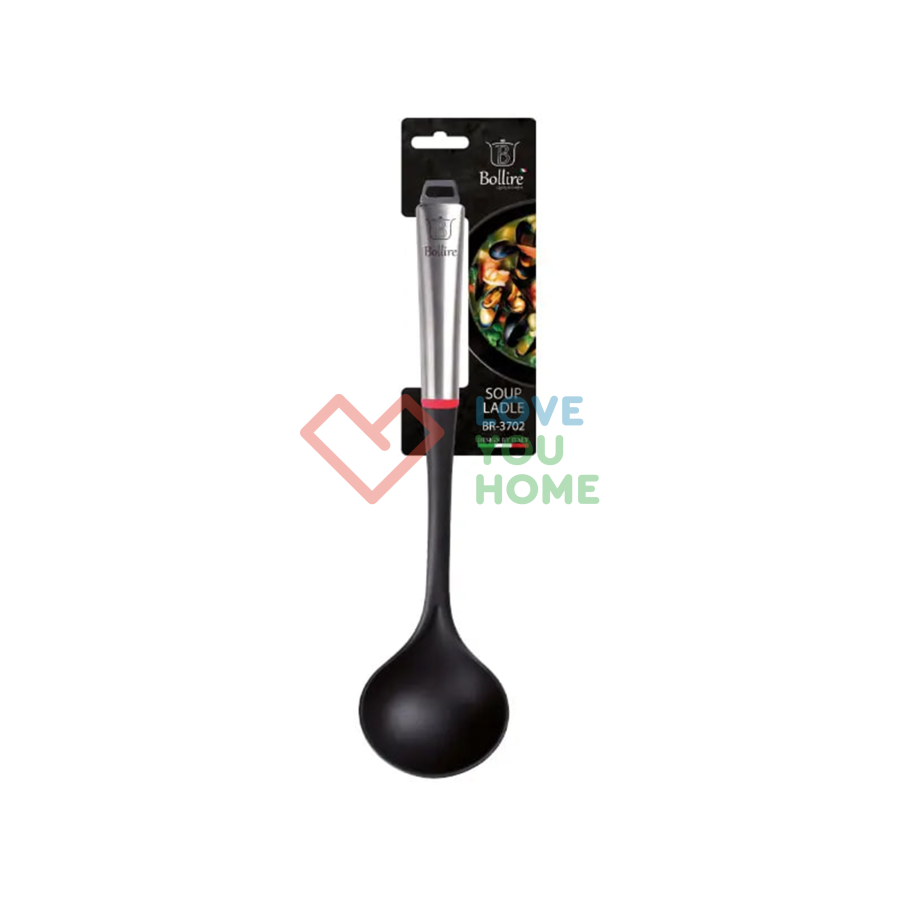 Половник "Bollire". Розмір: 35*8 см Матеріал: якісна нержавіюча сталь харчовий нейлон. Термостійкий захист. Ручка із нержавіючої сталі. Стійка до температури від -40°C до 230°C.
