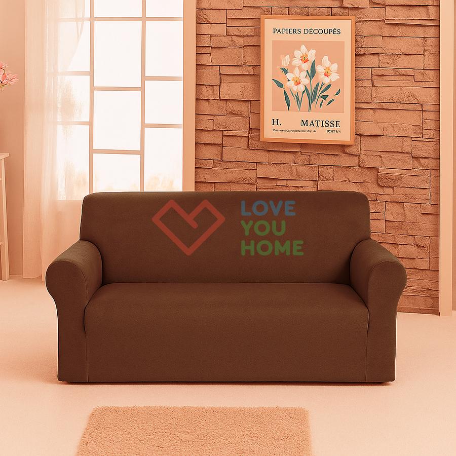 Чохол на диван 2-місний Велюр коричневий Love You