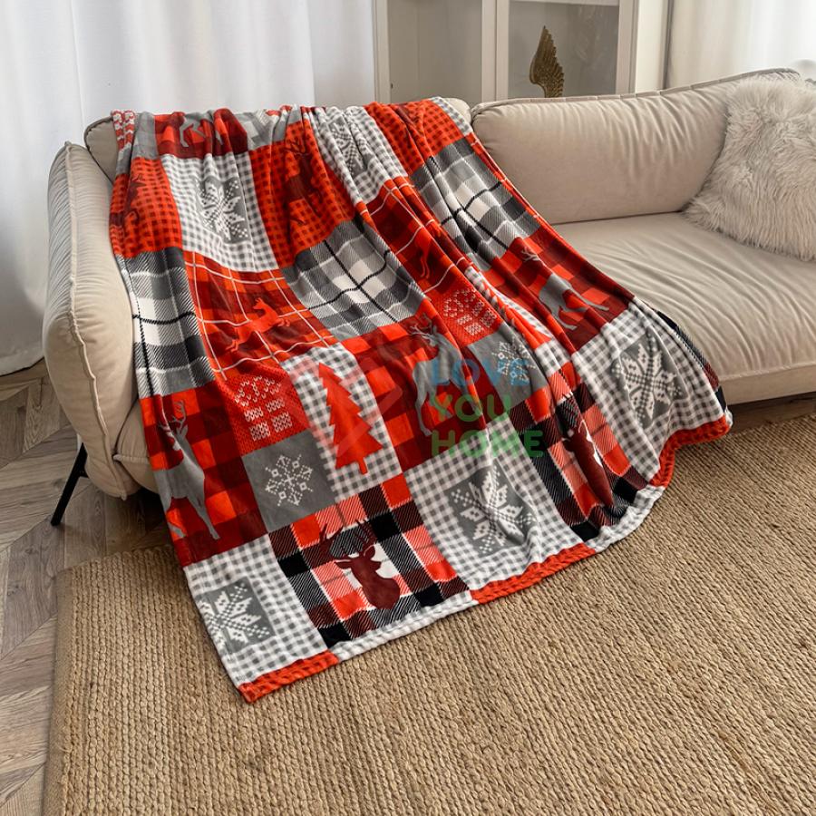 Подаруйте собі атмосферу затишку та свята з нашим зимовим пледом із веселим новорічним принтом.