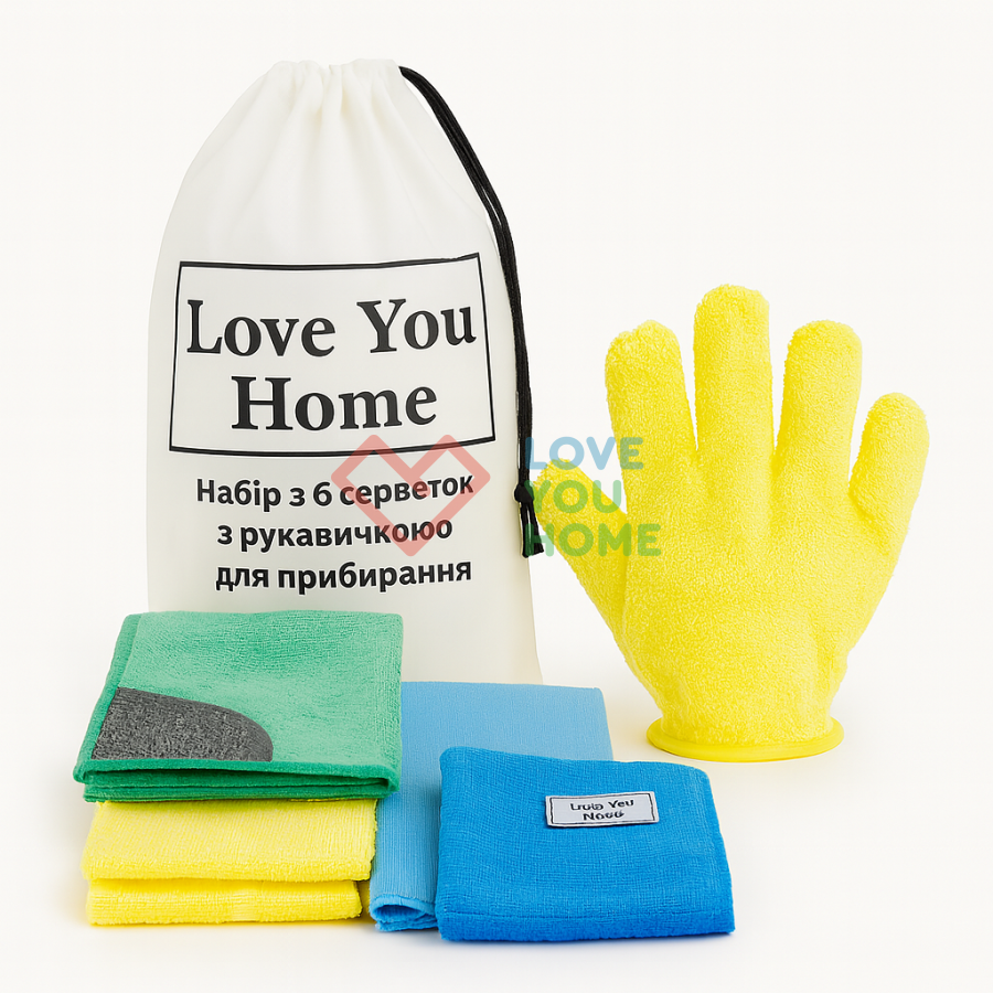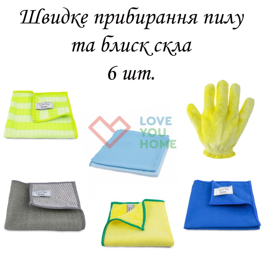 Набір з 6 серветок з рукавичкою для прибирання “Швидке прибирання пилу та блиск скла” LoveYouHome