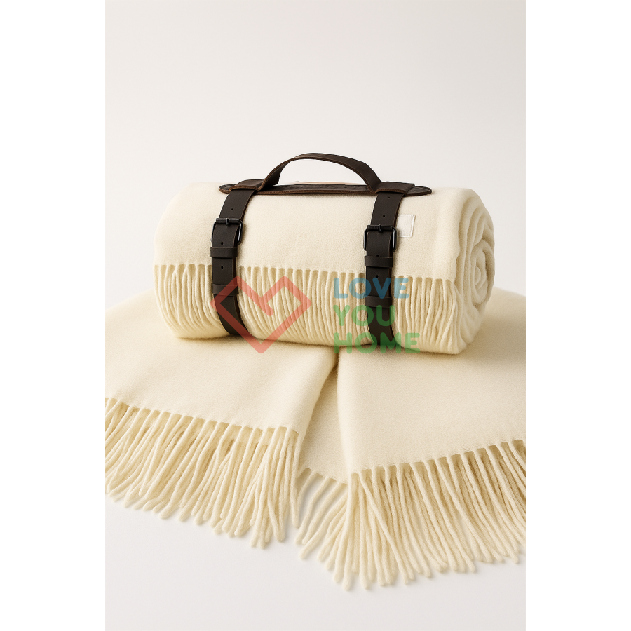 Натуральна вовна створює приємне відчуття тепла, добре утримує тепло та забезпечує комфортний відпочинок. Плед комплектується стильним і зручним шкіряним ременем, завдяки якому його легко брати з собою в подорож, на пікнік чи в офіс, а вдома він стає елегантним акцентом інтер’єру.