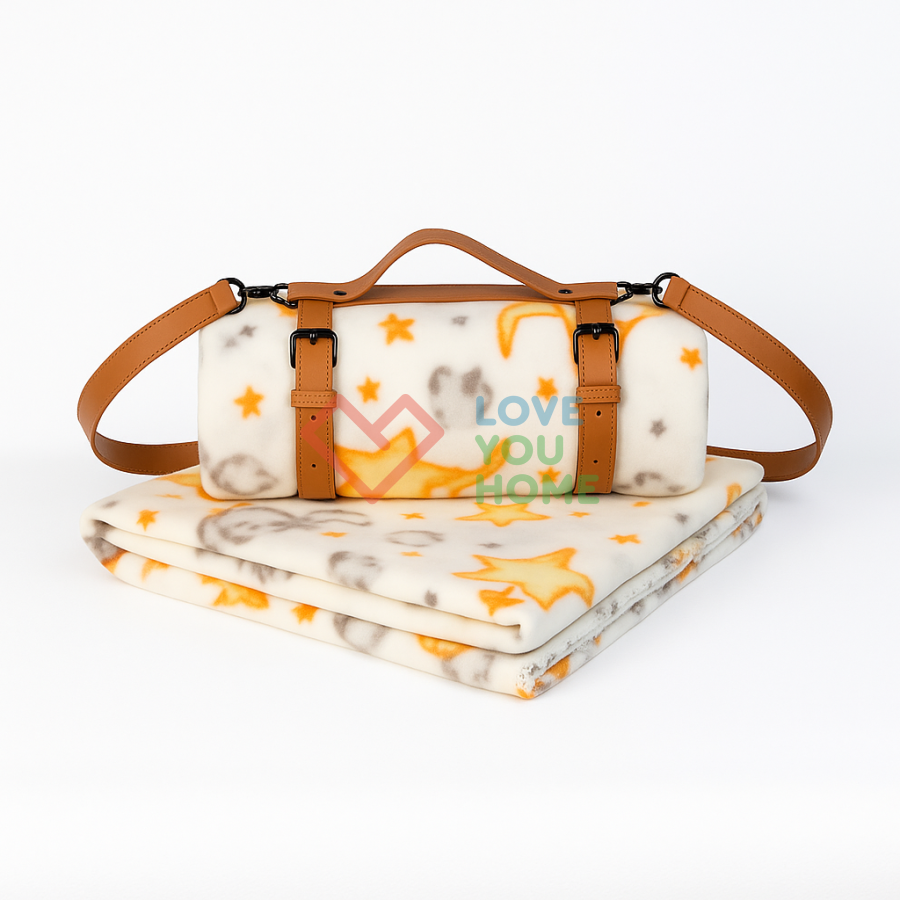 М’який флісовий плед з ременем-тримаєчем — зручний варіант для дому, авто, пікніка та подорожей. Легкий, теплий і приємний на дотик, плед легко згортається в компактний рулон і фіксується ременями з ручкою, тому його зручно переносити та зберігати. Ідеально підходить, щоб накритися в дорозі, взяти на природу або використати як додаткову затишну ковдру.