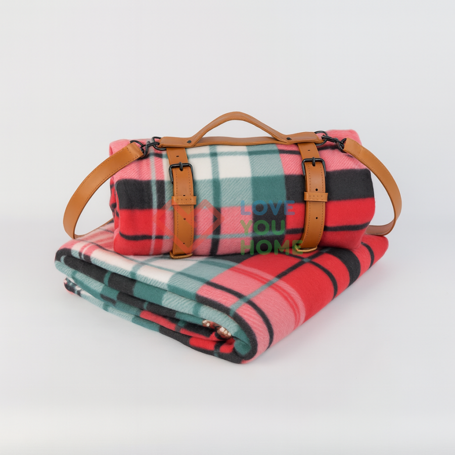 Плед тревел легкий флісовий Тепла класика 150x200 см з ременем Love You