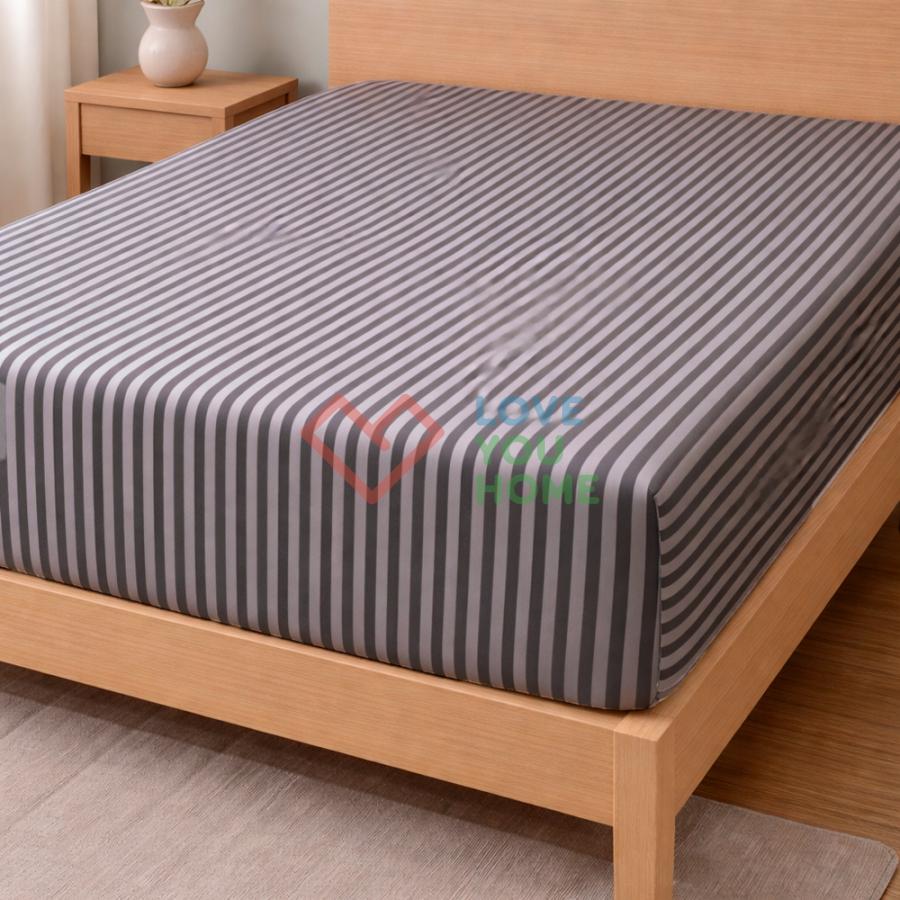 Простирадло на гумці бязь 160х200+25см Смужка Сіра Love You